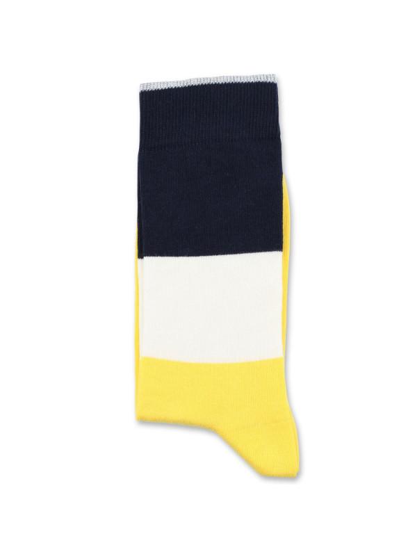 The Democratique Block Party socks in Yellow, White and Navy Blue from the Democratique socks core collection.