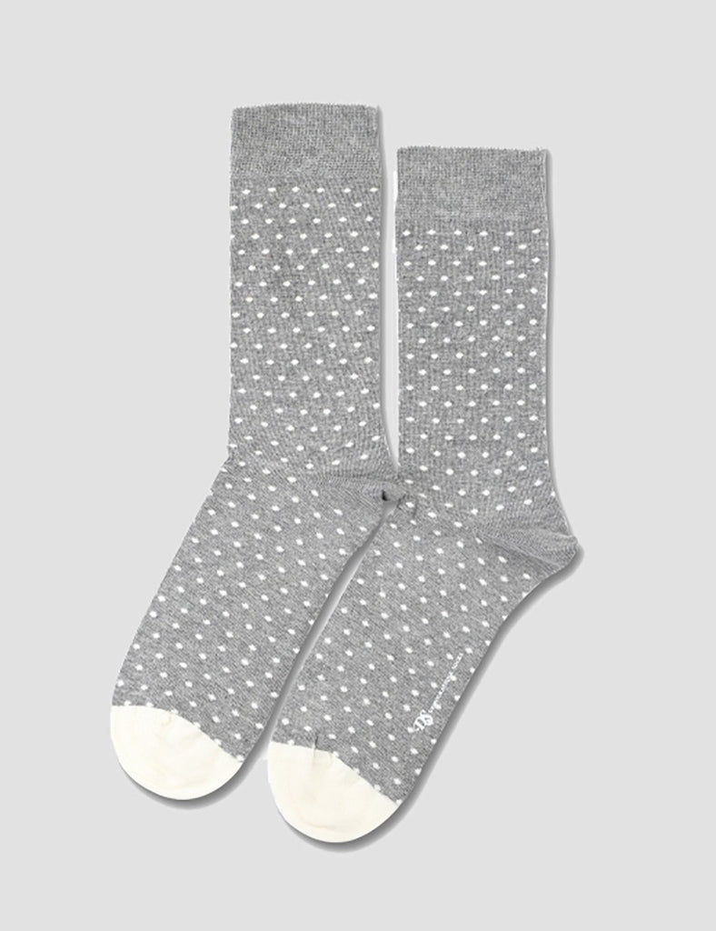 The Democratique Originals Polkadot socks in Light Grey Melange/Broken White from the Democratique socks core collection. Product Details: Material: 75% Combed cotton, 23% Polyamide, 2% Elastane Product MPN: DS125012-LGM