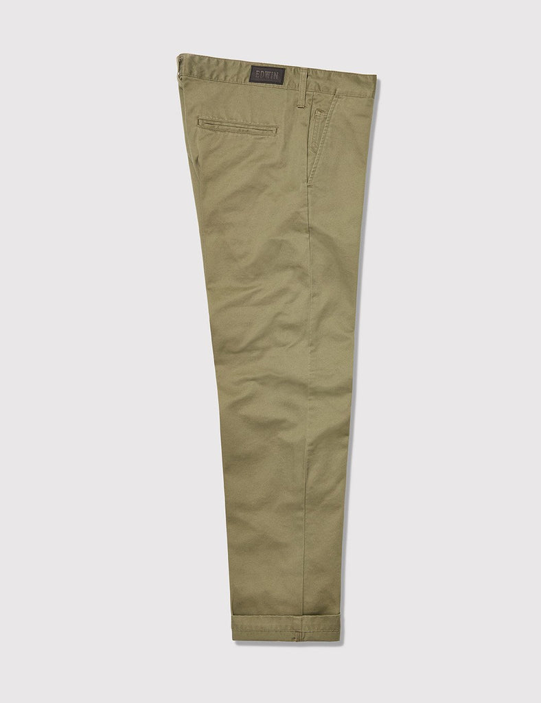 The Edwin 55 Chino in Military Green Rinsed from the Edwin trousers Spring/Summer 2017 collection.
