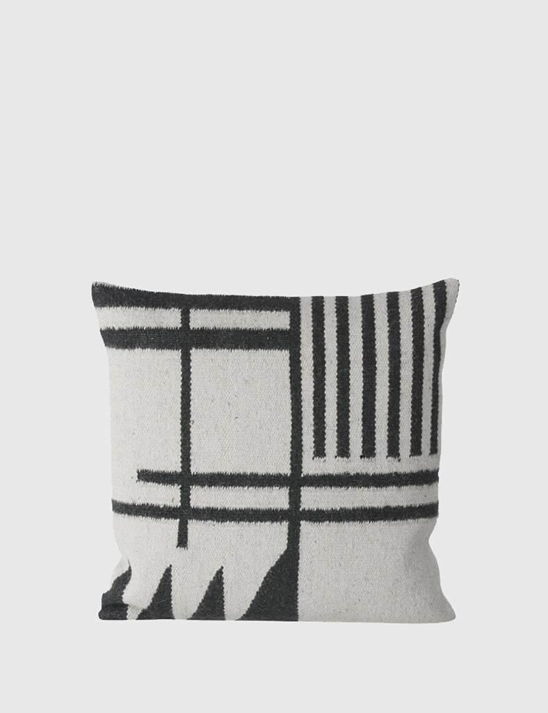 The Ferm Living Kelim lined cushion in Black/White from the Ferm Living homeware core collection.