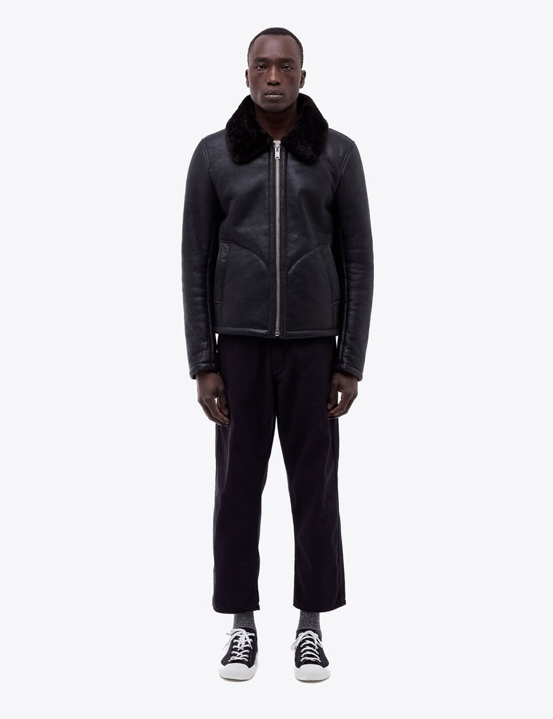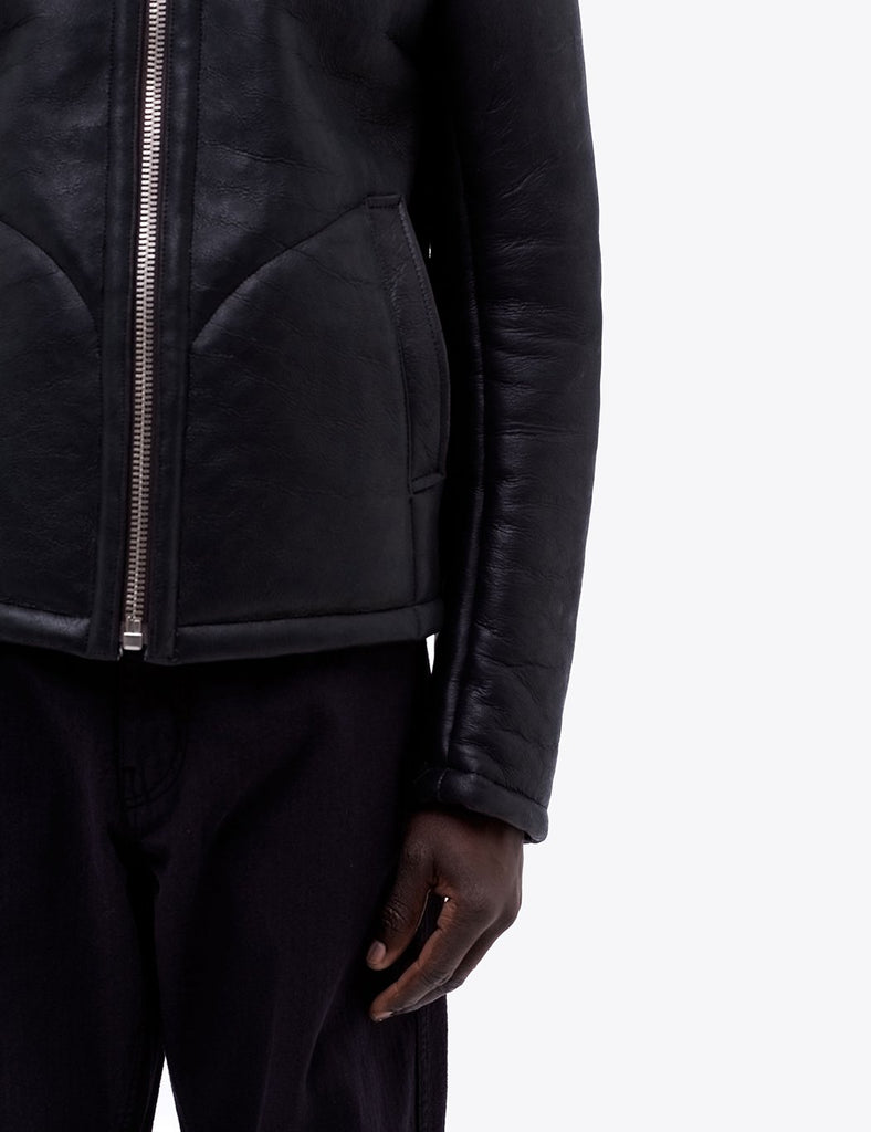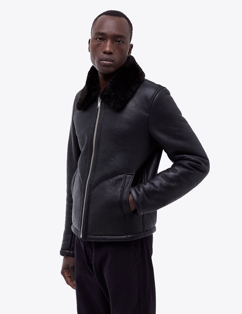 YMC Budgie Sheepskin Coat (Leather) - Black