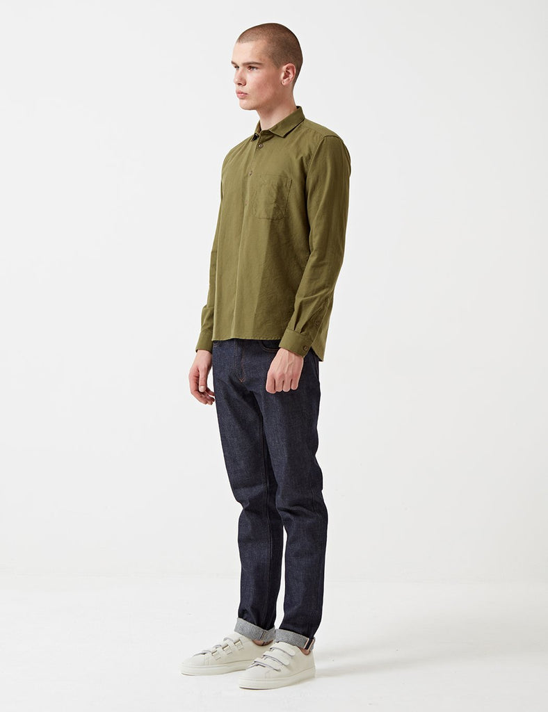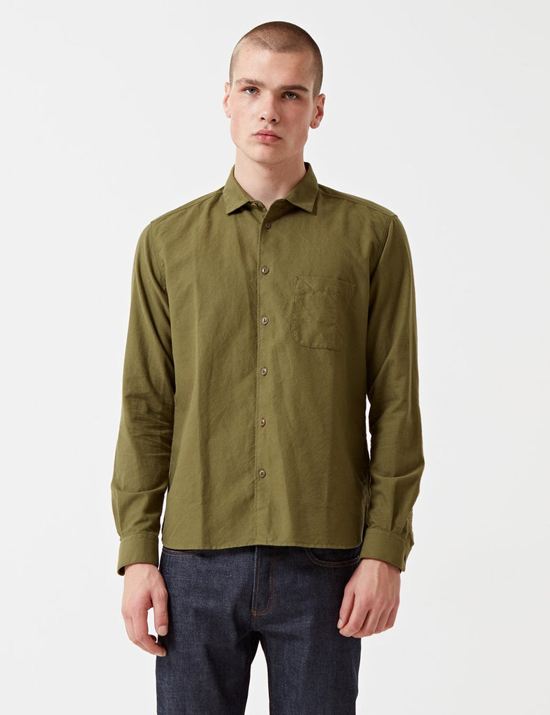 The YMC Curtis Oxford brushed shirt in Olive Green from the YMC shirts Fall/Winter 2017 collection. Product Details: Material: Brushed CottonProduct MPN: P2IAE-30
